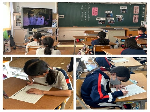 人権擁護委員の方や市保健福祉部の方々がお出でになり、4年生で人権について考える授業をしてくださいました。学級でのいじめをテーマにした動画を視聴した後、自分や友達の大切な人権を守っていくためにはどのように行動するべきか、みんなで考えました。