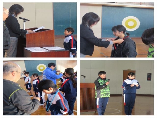 ゴールめざして一人一人の児童が力の限り走りぬきました。完走率100%です!平坦で走りやすい新コースや、全校児童が互いに応援し合えるよう改善した今年度の持久走大会は、「頑張れー!頑張れー!」という声援があちらこちらに響き合い、昨年度以上の保護者・地域の方々のご参加をいただきました。児童が互いの頑張りを称え合い、逞しい長須の子の姿を保護者や地域の方々にご覧いただける素晴らしい行事となりました。閉会式では、完走賞や上位入賞者へのメダル贈呈、先日の野馬追マラソン出場者の報告会を行いました。