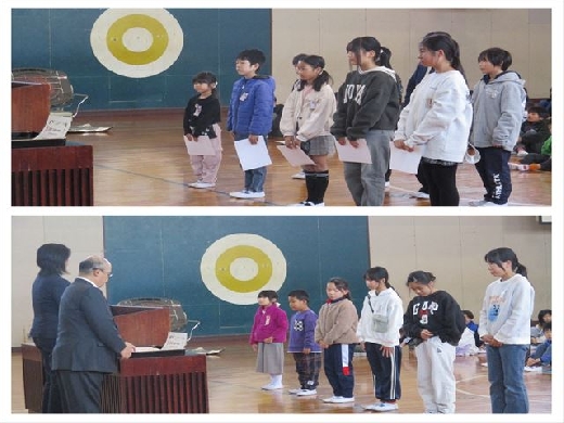 4時間目に終業式を行いました。式に先立ち、表彰を行いました。数々の展覧会、スポーツ、読書等でたくさんの児童が表彰されました。式の「2学期をふりかえって」では、代表児童から、遠足や持久走大会等の行事や学級委員として努力できたことについて素晴らしい発表がありました。今学期も多くのご協力をいただき、児童が健康で安全に学校教育活動が行えたことに感謝いたします。ご家族皆様でよい冬休みをお過ごしください。