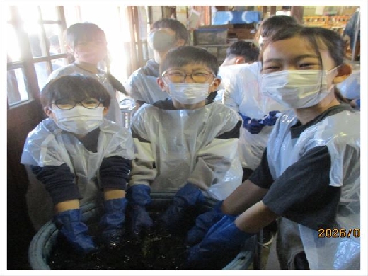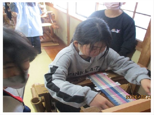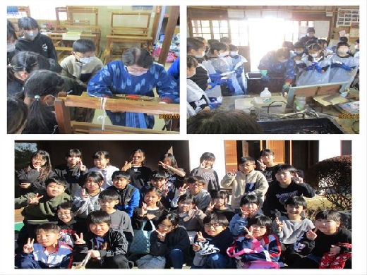 4年生は、社会科「地域で受け継がれてきたもの」の中で、茨城県の伝統文化や工芸等について学習をしました。今日は、結城市の工房を訪れ「結城紬・藍染め体験」を行いました。工房の方のお話を聞き、その歴史や特徴などについて改めて知ってり、機織り機でのコースターづくりや藍染め体験に楽しく取り組んだりすることができました。