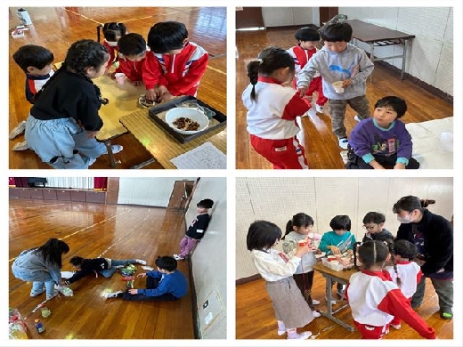 学区内のこども園の年長さんをお招きし、1年生と「楽しく遊ぼう集会」を行いました。1年生はお客様が楽しんでくれるよう、長須小学校の紹介や手作りのおもちゃを準備し、一緒に遊びながらおもてなしを頑張っていました。お兄さん、お姉さんの活躍ができました。