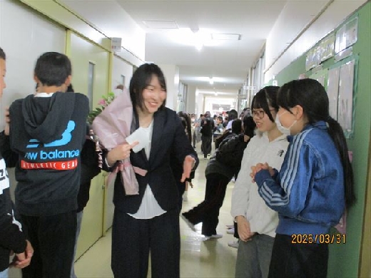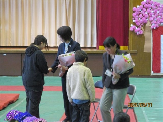 長須小から4名の先生方が離任されます。今日は児童の皆さんからのお別れの言葉や花束・エールなど、心温まるたくさんの贈り物をいただき有難うございました。私達転出者は勤務の長短はありますが、長須小学校で皆さんと一緒に過ごせた日々に深く感謝いたします。保護者・地域の皆様方、大変お世話になりました。有難うございました。