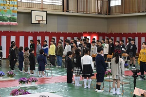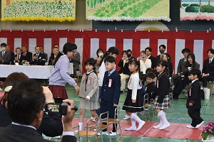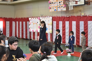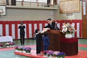 令和8年度 入学式が行われました。ステキな衣装を身に着けた10名のかわいい新入生たちは、素晴らしい態度で、校長先生や来賓のお客様のお話を聞くことができました。教科書とヘルメットを頂き、5・6年生の歓迎の言葉を聞き、お父さん・お母さんの笑顔に包まれて、1つお兄さん・お姉さんになった10名の天使たち。「おはようございます」「ありがとうございます」「ごめんなさい」がきちんと言える、ステキな長須小学校児童になってくださいね。ご入学、おめでとうございました。
