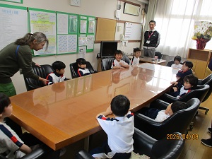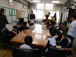 1年生が校内探検で、校長室に遊びに来てくれました。ちょうど人数ぴったりの10個あるフカフカのいすにすわった1年生たちは、「このまま寝ちゃいそう~。」とご機嫌でした。毎日、少しづつ新しい発見がある1年生たち。1歩1歩、小学生の階段を上がっています。