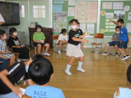 2年生が外国語活動でフルーツバスケットをやっていました。