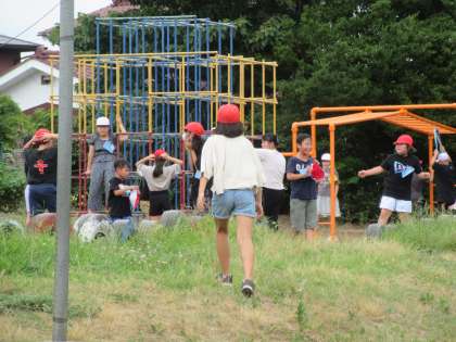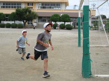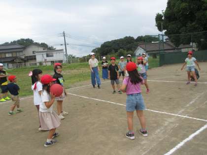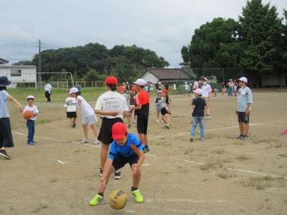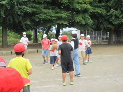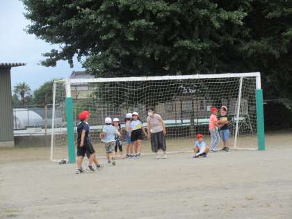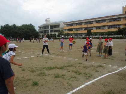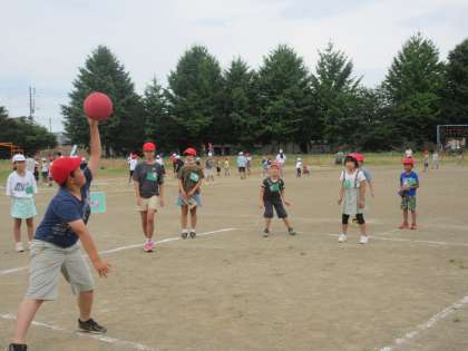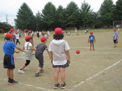 ドッジボールをしている班が多く見られました。 4年生から高学年が球を投げるときは「左手で投げる」といったハンデをつけている班もあり、どの学年も楽しく遊べるように工夫していました。