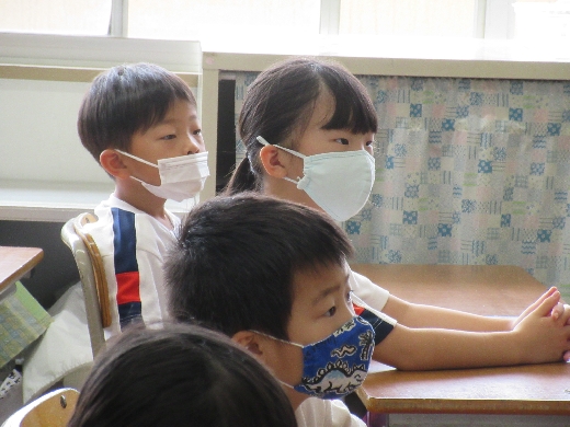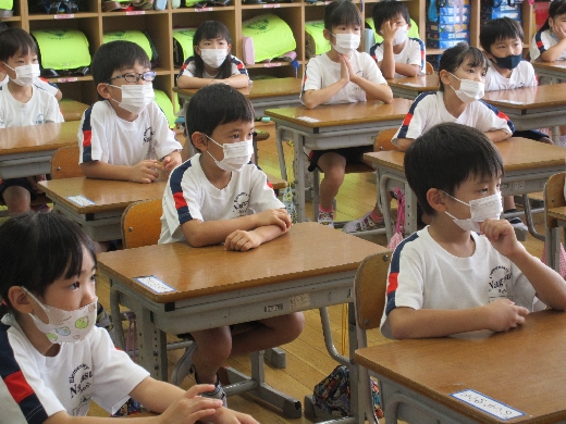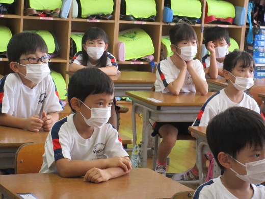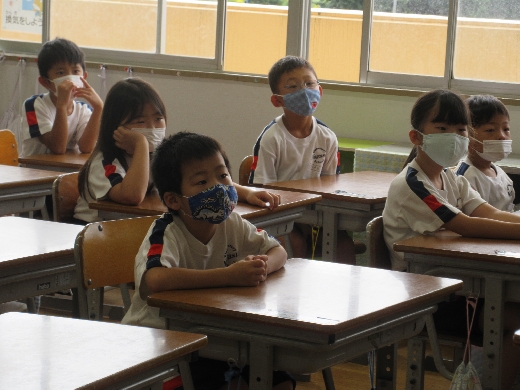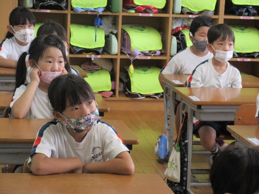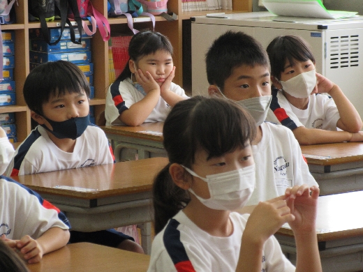1年生が、玉城先生(図書室の先生)に「読み聞かせ」してもらいました。