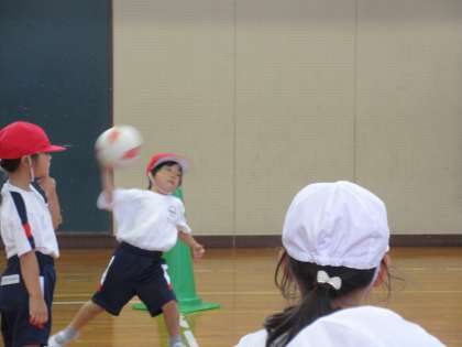 ボール運動後、ドッジボールを行いました。 上手にボールを投げているお友達が多くいました。 何人も当てている外野のお友達に「投げるの上手だね。」と声をかけると「野球やってるから」と答えてくれました。