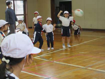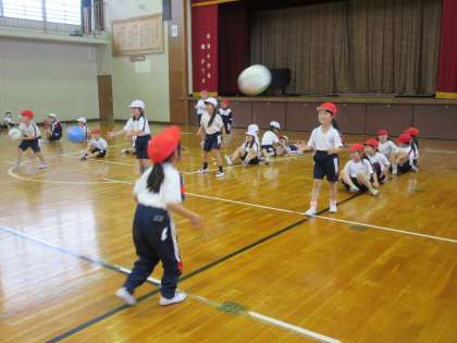 5時間目、1年生がボール運動を行っていました。 とても楽しそうでした。 先生の話を姿勢良く、聞いていた姿にも感動しました。