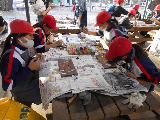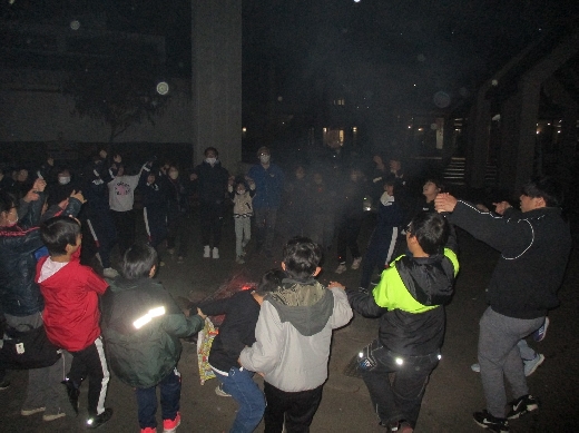 宿泊場所である「さしま少年自然の家」に到着後、入所式、焼き板作り、夜はキャンプファイヤーを行いました。