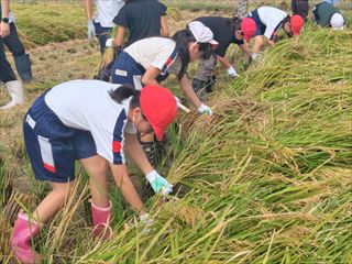 児童たちの郷土愛と農業や食への関心を深めることを目的として、米づくり体験を行っています。長須西部地域資源保全協議会の皆様や地元の稲作農家の方にご協力いただき、日本人にとって大切な食材である米の生育過程と、食品として加工されて口に入るまでの工程を学ぶ貴重な事業となっています。
