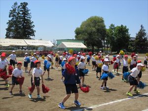 開会式や閉会式、応援合戦、ダンスなどを一通り行い、他の種目も、入退場の仕方などを確認しました。