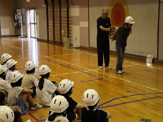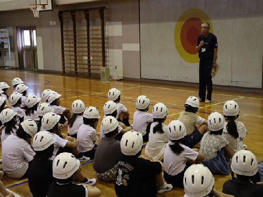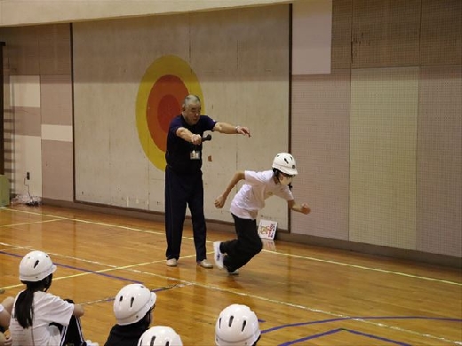 境警察署生活安全課のスクールサポーターの方に来ていただき、不審者が侵入した際に意識することや登下校中に不審者に遭遇した際の対応の仕方などを実演を交えながら教えていただきました。