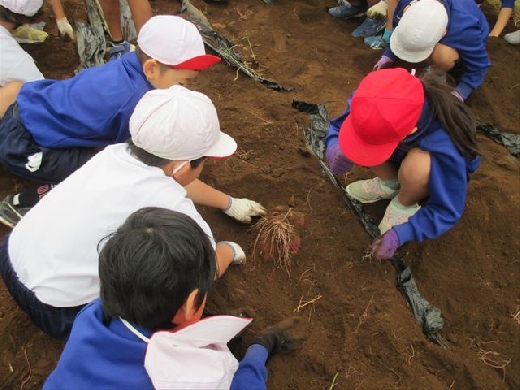 1、2年生が生活科の時間に育てているサツマイモの収穫を行いました。 今年は豊作だったようです。