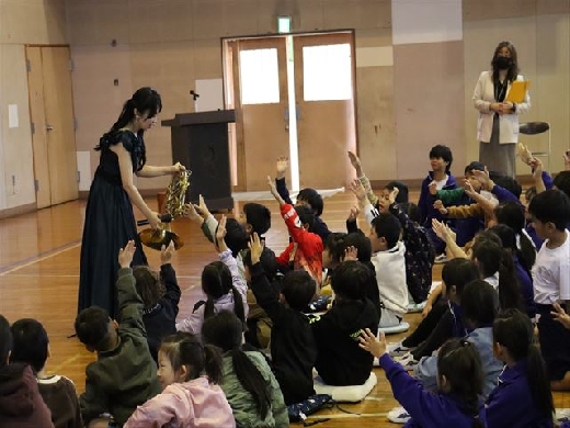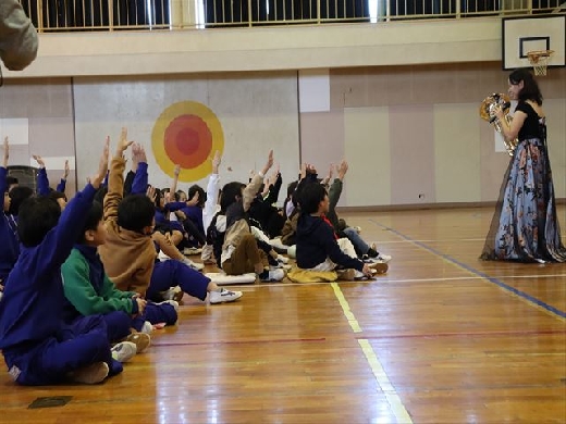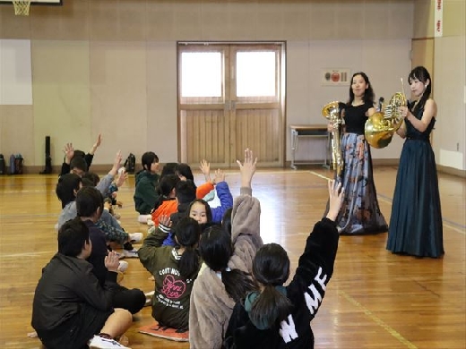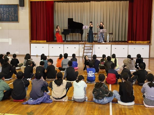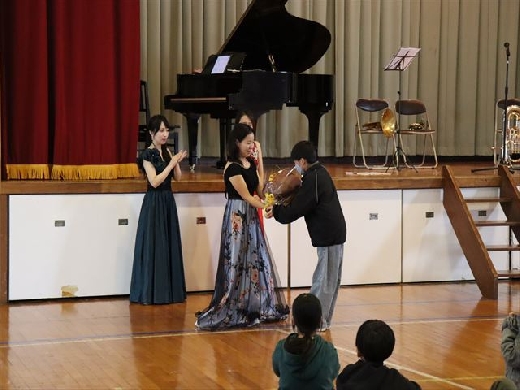 本日、3人の演奏者の方に来校していただき文化芸術体験出前講座(音楽鑑賞会)を行いました。