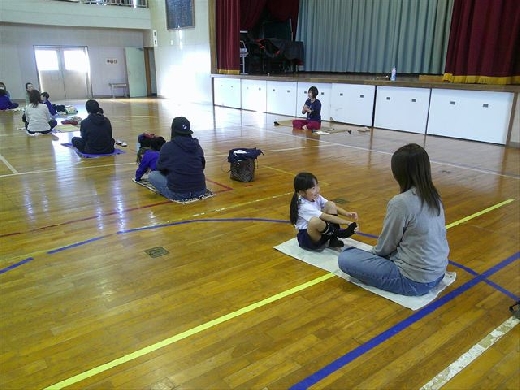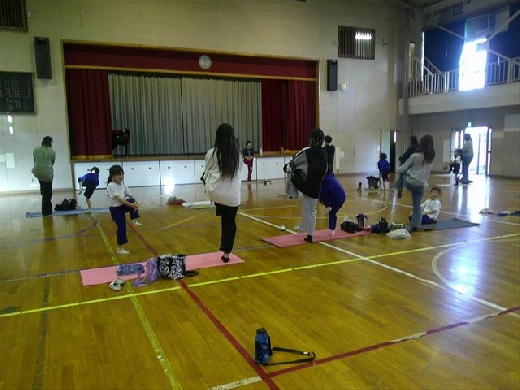 内容は、「親子ヨガ教室」です。インストラクターの先生の指導のもと、親子で楽しくヨガを行うことができました。
