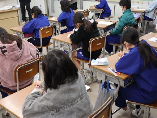 4年生が、人権擁護委員の方々を講師にお迎えし、いじめに関する資料をとおして人権について考える授業を行いました。皆、真剣に自分の考えをまとめていました。