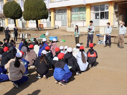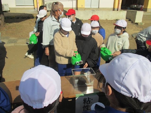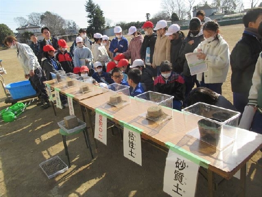 利根川の堤防の維持工事を行っている株式会社高橋芝園土木の社員の皆様を講師にお迎えし、4、5年生の児童を対象に出前講座を行いました。