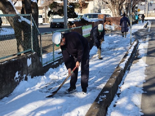 学校付近の通学路の安全確保のため、先生方で雪かきを行いました。また、先日、4、5年生が出前授業でお世話になった株式会社高橋芝園土木の社員の方が来校し、通学路の雪かきを行ってくださいました。大変ありがとうございました。