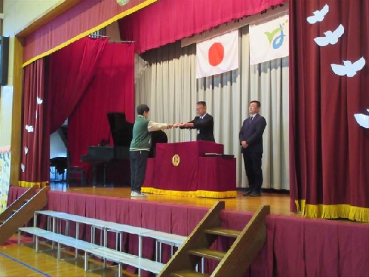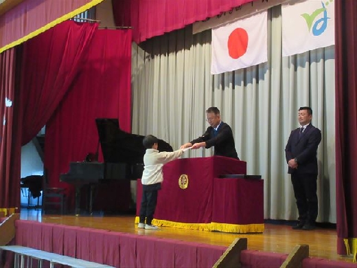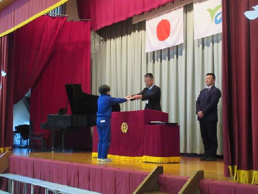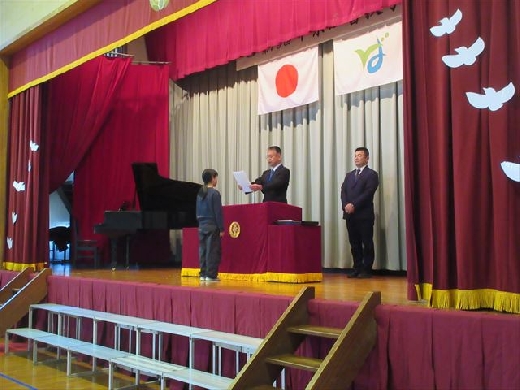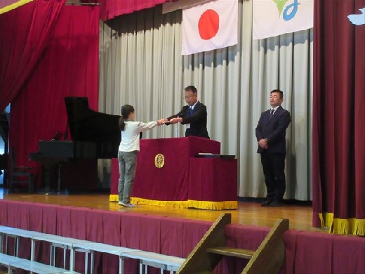 学年ごとに全員でその場に起立し、代表児童が修了証を受け取りました。どの学年も大変立派な態度でした。