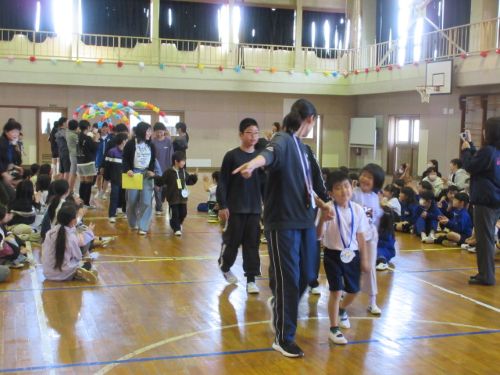会の中では、上級生から手作りの「お祝いメダル」が贈呈されました。