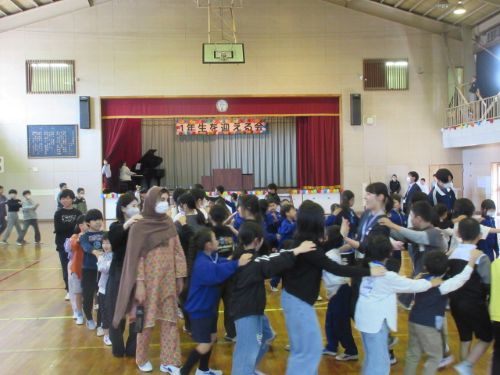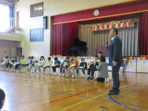今日の業間休みから3時間目にかけて、全校生で「1年生を迎える会」を行いました。