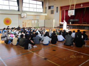 学校公開及び学校運営協議会を実施しました。授業の様子や理科実験教室を運営委員の皆さんと保護者の方に参観していただきました。理科実験教室は楽しくて、盛り上がっていました。