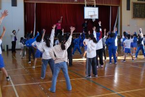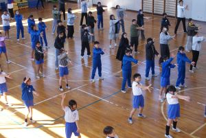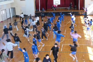 文化庁の行う「学校における文化芸術鑑賞・体験推進事業」による芸術家派遣として、演舞麗夢(エンブレム)からプロダンサー6人が七重小学校に来てくださいました。低学年と高学年に分かれてダンス体験をしました。この後の学校公開日に披露する予定です。