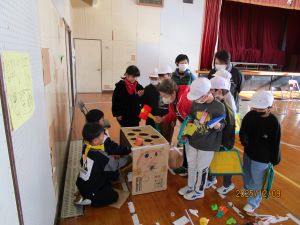 1・2年生による七重っ子まつりがひらかれました。シニアクラブの方々をお客さんとして招き、いろいろなお店に1年生が案内しました。2年生のひらくお店はとても工夫が見られどれも楽しく、みんな夢中になって楽しい時間を過ごしました。シニアクラブの方々、ありがとうございました。