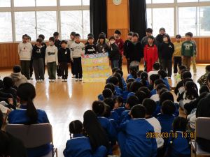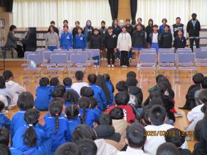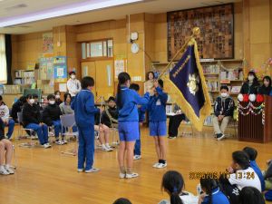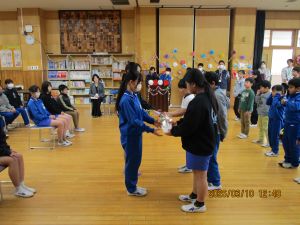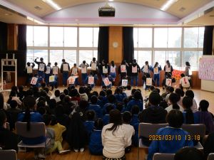 1年生から5年生が感謝の気持ちを込めて6年生を送る会を開きました。学年ごとにお礼の言葉や歌、ダンスを6年生に披露して、感謝の気持ちを伝えました。6年生からはお礼の言葉と歌で下級生の気持ちに答えました。6年生から5年生へ校旗を受け渡し、これからの七重小を託しました。全校児童の態度が素晴らしく、とても心に響く会であり、卒業式も楽しみです。