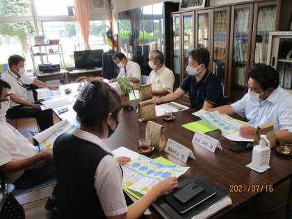 16日(金)に、令和3年度第1回七重小学校評議員会を行いました。5名の評議員の方全てに参加していただきました。