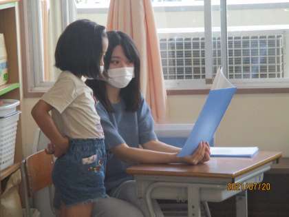 5時間目に、各担任の先生から通知票が手渡されました。一人一人と1学期の学習や生活を振り返りながら行いました。