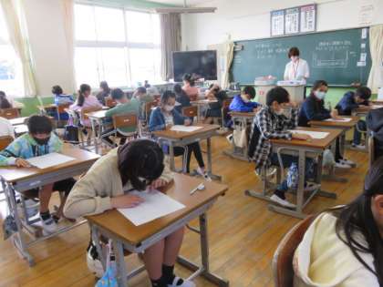 3~6年生は朝自習の時間に校長先生が作成したかけ算50問のテストに挑みました!みなさん九九マスターズ(合計500点)を目指して真剣な態度で取り組みました。