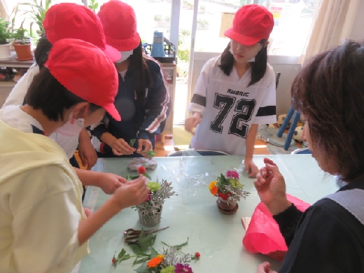 自分たちでつくった色紙やフラワーアレンジメントをわたし、一緒に「だるまさんの一日」などのゲームを楽しんで別れを惜しみました。