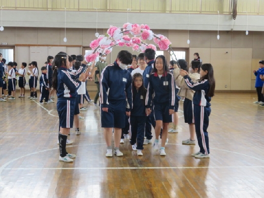 昼休みに全校児童で、1年生を迎える会を行いました。