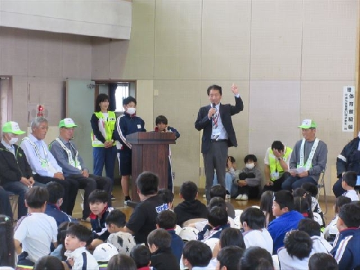 地域の駐在所から巡査部長様を講師としてお招きし、交通安全についての講話をしていただきました。