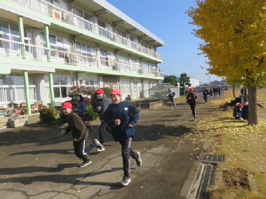 小春日和となった業間時間に、持久走記録会に向けた業間走が行われました。