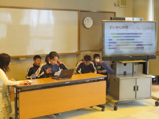 昼休みに、保健委員が中心となって運営したオンライン保健集会が行われました。