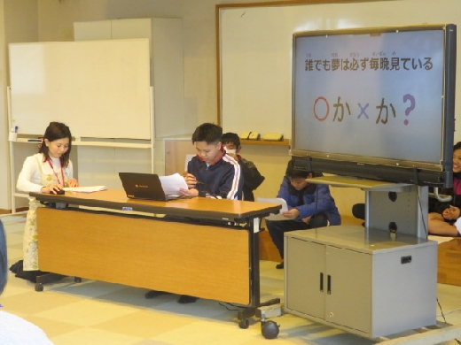 睡眠の大切さについて、クイズなどを交えながら分かりやすく伝えていました。