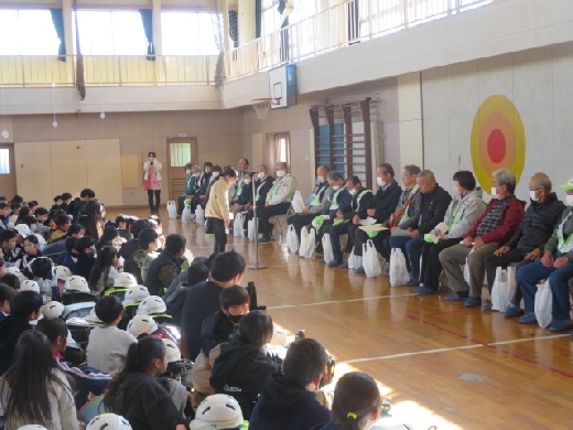 七郷子どもサポート隊の皆様に集まっていただき、今年1年安全を守っていただいた感謝の気持ちを伝えました。