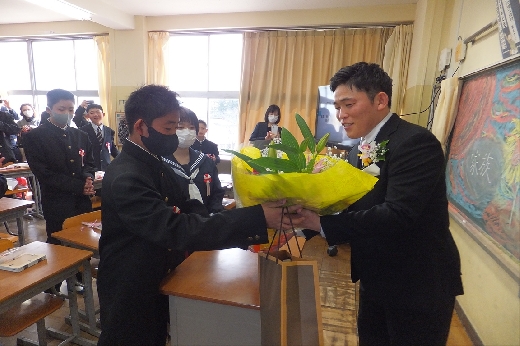 令和5年度第77回卒業証書授与式が行われました。学校のリーダーとして頑張ってきた6年生もいよいよ巣立ちの時となりました。担任の先生の呼名で、卒業生が大きな声で返事をして、校長先生から卒業証書をいただきました。来賓の皆様のお祝いの言葉やたくさんのお祝いメッセージをいただきました。「門出の言葉」では、卒業生が一人一人、思い出や感謝の思いを伝え、在校生が送る言葉で呼びかけました。式を終えた卒業生は、担任の先生と最後のお別れを教室で行いました。生子菅小学校の卒業生として、自信をもって中学校に進学してほしいと思います。おめでとうございました。