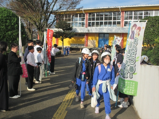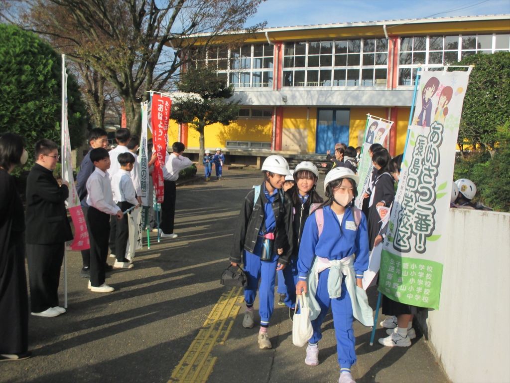 猿島中学校生徒及び生子菅分館の方々によるあいさつ運動が行われました。皆さんのあいさつに子供たちも元気よくあいさつを返していました。あいさつの合言葉に、あ(かるく)、い(つも)、さ(きに)、つ(づけて)というものがあります。大切なあいさつを進んでできる子供たちであってほしいです。猿島中学校、生子菅分館の皆様、ありがとうございました。