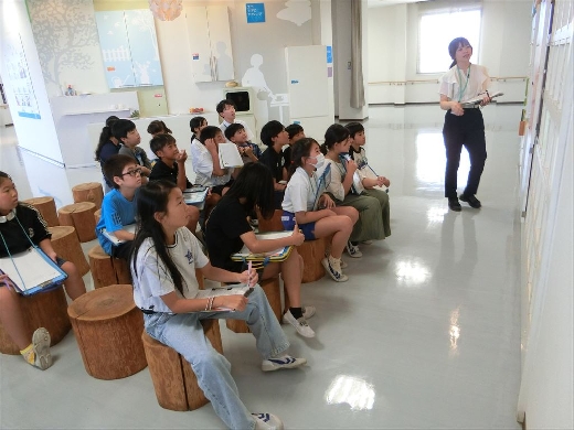 まず訪れた浄水場では、川の水がどのようにしてきれいになり、家庭に届くのかを学びました。大きな機械やろ過のしくみを見て、水が安全に使えるようになるまでに多くの工夫があることを知りました。児童たちは、「水を大切に使いたい」と話していました。