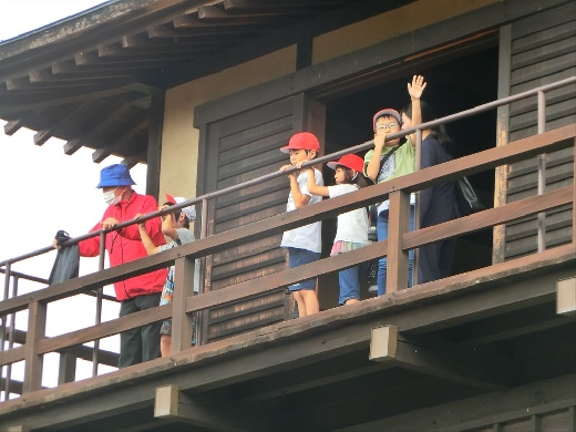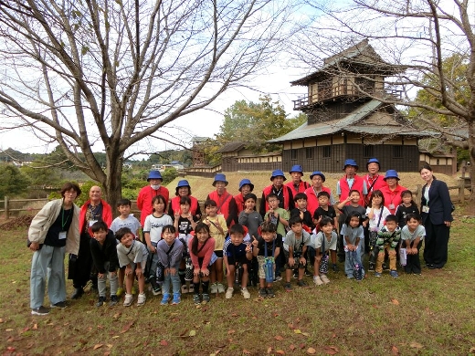 最後に訪れた逆井城跡公園では、坂東市ボランティアの会の方々にご協力いただき、小グループに分かれて施設内を見学しました。昔のくらしや城のつくりについて、分かりやすく教えていただき、児童たちは真剣な表情で話を聞いていました。