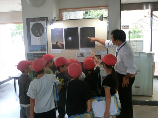 次に向かった郷土館ミューズでは、常設展示の説明を受けながら、地域の歴史や文化について学びました。大きな天体望遠鏡も見学し、児童たちは興味津々の様子でした。
