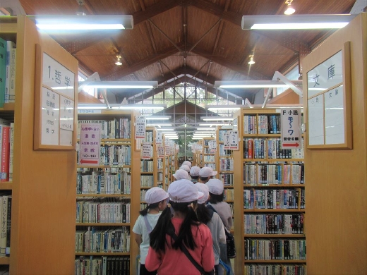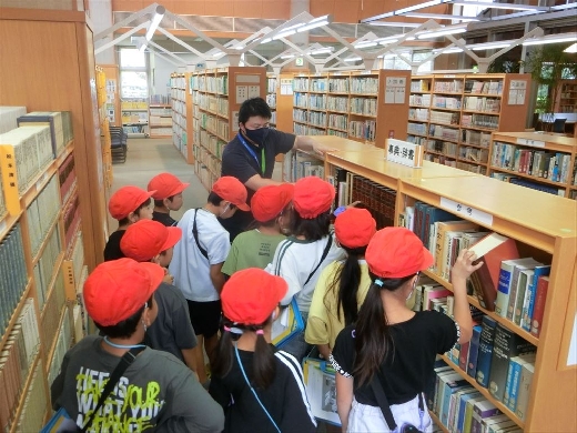 まず訪れた猿島図書館では、図書館の使い方やマナーについて教えていただきました。児童たちは、「本の数は何冊ありますか?」「働いている人は何人いますか?」など、職員の方に積極的に質問し、話を聞きながら熱心にメモを取っていました。図書館にはたくさんの種類の本があり、学習室などの施設も見学しました。