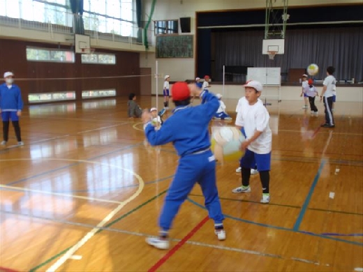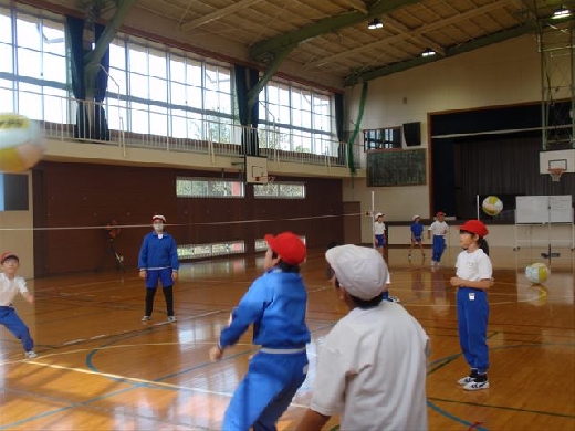 10月24日(金)、4年生の児童が体育の授業で「ソフトバレーボール」に取り組みました。