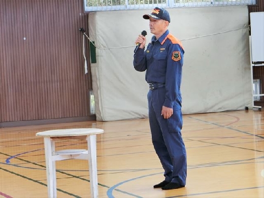 訓練のあとには、消防署の方から火災についてのお話を聞きました。日本では年間2万1千件もの建物火災が発生していて、そのうち190件が学校で起きた火災だそうです。火災の原因としては、「ストーブ」「火遊び」「放火」が多いことを教えていただきました。また、「訓練をしっかり行い、いざというときに命を守る行動がとれるようにしてほしい」とのお話もあり、児童たちは真剣な表情で耳を傾けていました。