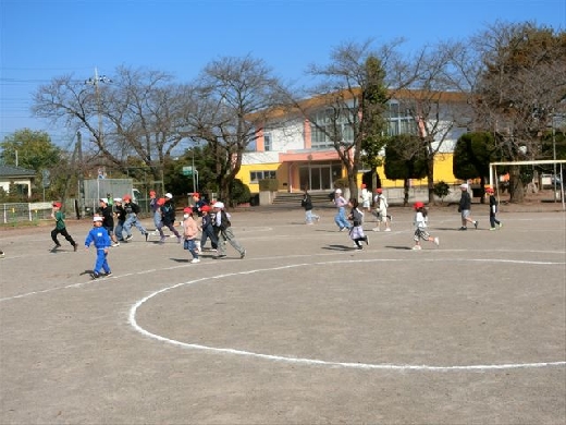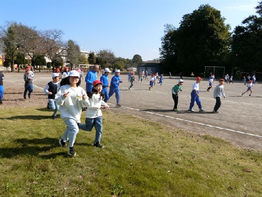 生子菅小学校では、児童の体力づくりと心肺機能の強化を目的に、業間休みに「5分間走」を行っています。