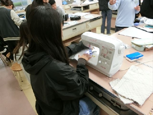 はじめはミシンの操作に戸惑う姿も見られましたが、回を重ねるごとに少しずつ慣れ、今では自信をもって作業に取り組む姿が見られます。
